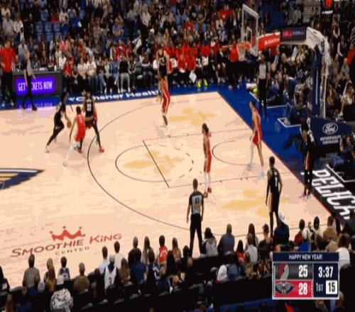 看看這個底角的3分三不沾,出手時機(jī)沒有問題,問題是小楊不應(yīng)該站在那里啊