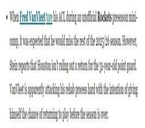 名記Stein:火箭目前沒有完全排除范弗利特本賽季復(fù)出的可能性。