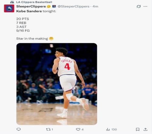 快船記者Lauren Rosen:桑德斯三節(jié)拿到20分已經(jīng)創(chuàng)造生涯新高,微波爐球員。