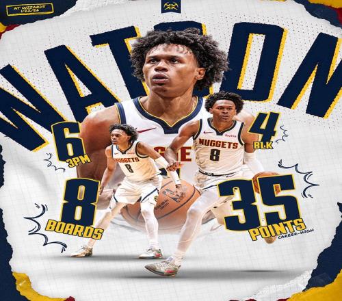 掘金:沃特森35分8板3助2斷4帽創(chuàng)生涯新高、穆雷24分4板5助2斷、瓦蘭丘納斯16分9板2助、戈登16分5板5助。