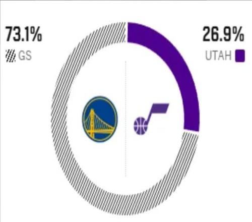 這是兩隊(duì)本賽季的第三次交手,前兩次交鋒均以勇士大勝告終,優(yōu)勢非常明顯。賽前,美媒ESPN對本場比賽進(jìn)行了勝率預(yù)測,勇士隊(duì)勝率高達(dá)73.1%,一騎絕塵,爵士隊(duì)勝率則僅有26.9% ,還是不被外界看好。