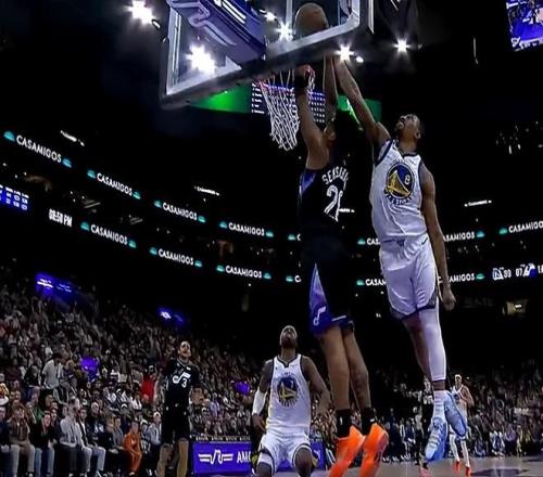 易邊再戰(zhàn),馬爾卡寧接球沖擊內(nèi)線,對抗追夢滯空雙手暴力隔扣。庫里連續(xù)三分命中和格林擊掌慶祝,勇士已領(lǐng)先爵士近20分。梅爾頓封蓋森薩博裁判延遲響哨,勇士挑戰(zhàn)失敗裁判維持原判,科利爾壓哨上籃打進(jìn),爵士轟出一波27-10追到個(gè)位數(shù)分差。